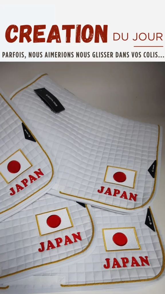 Galeries photos Photos » Parmi nos dernières réalisations... 1 - Parmi nos dernières réalisations...2 - CLUB EQUESTRE OUED YKEM - chemises remise des prix2 - ECURIE Olivier & Timothée BOST - casquettes2 - lettrage - housses de protection étriers2 - MAISON JOLLIOT-PAULIN - tapis de selle2 - protection poitrail2 - SELLE FRANCAIS Le Rv des Prodiges 2025 - chemise remise des prix2 - Soukaina OUADDAR (Maroc) - tenture de box2 - ST-LÔ EXCELLENCE - chemise remise des prix2 - TÊTE CHEVAL - blouson matelassé2- OXY VERT - tapis de selleCOREN CRE Normandie Trec - vestes softshellCOREN CRE Normandie Trec - vestes softshelldossier de chaise - lettrageECURIES DU TOTEM - sweat-shirtELEVAGE DES HAIES BLEUES - chemise polaireEQUIPE NATIONALE du JAPON CSO - tapis de selleINNOV 8 - tapis de selle & bonnetISR - ensemble tapis de selle+bonnetL'AS DE TRAIT - chemiseLA COUBRE ECURIE - veste polairesacs toile de jute - lettrageSOCIETE D'EQUITATION DE VERNOUILLET - chemises remise des prixSOLEBOIS - vestes softshell de travail